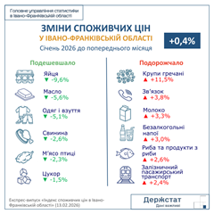 Зміни споживчих цін в Івано-Франківській області у січні 2026 року |