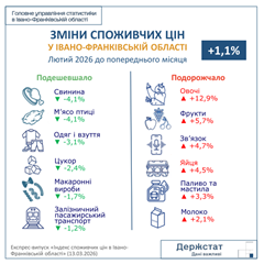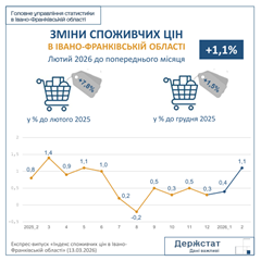 Зміни споживчих цін в Івано-Франківській області у лютому 2026 року |